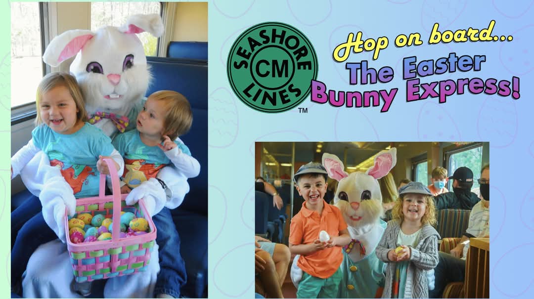 HOP ON BOARD THE EASTER BUNNY EXPRESS with Heart of Surfing! The Easter Bunny will travel on a Seashore Lines special train and visit with all passengers, young and older! Each child onboard will receive a special gift from the Easter Bunny! A live musician will also be onboard, for the enjoyment of all!
